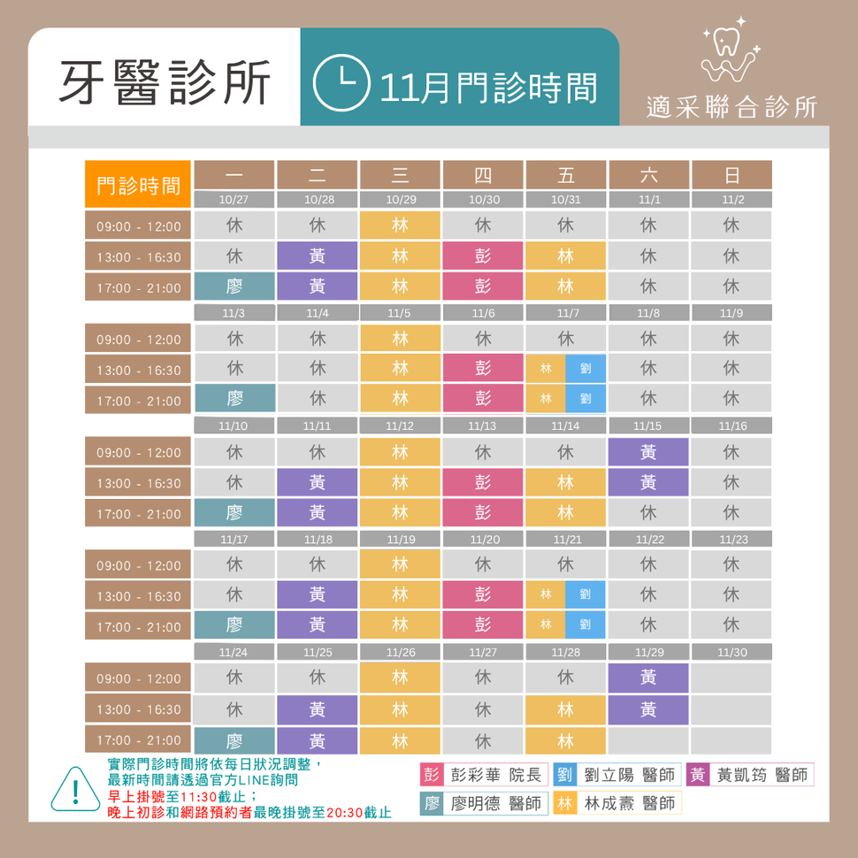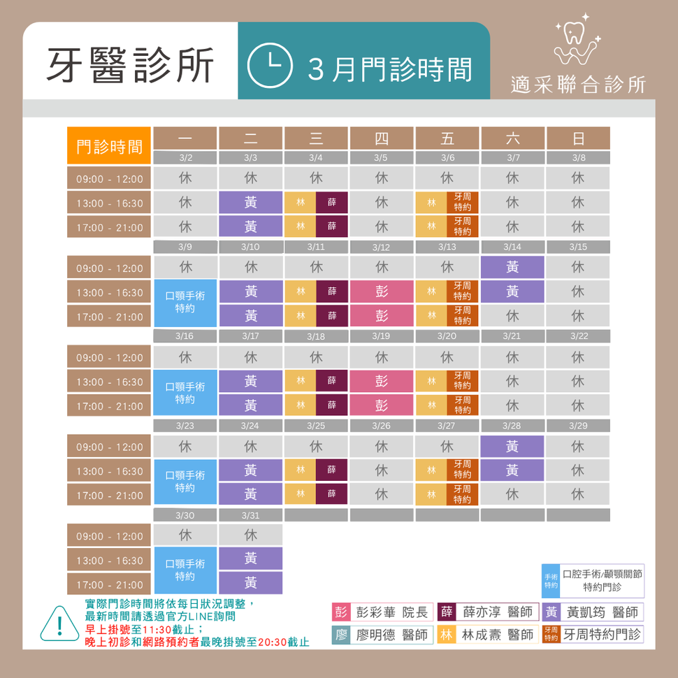 實際門診時間依每週狀況調整