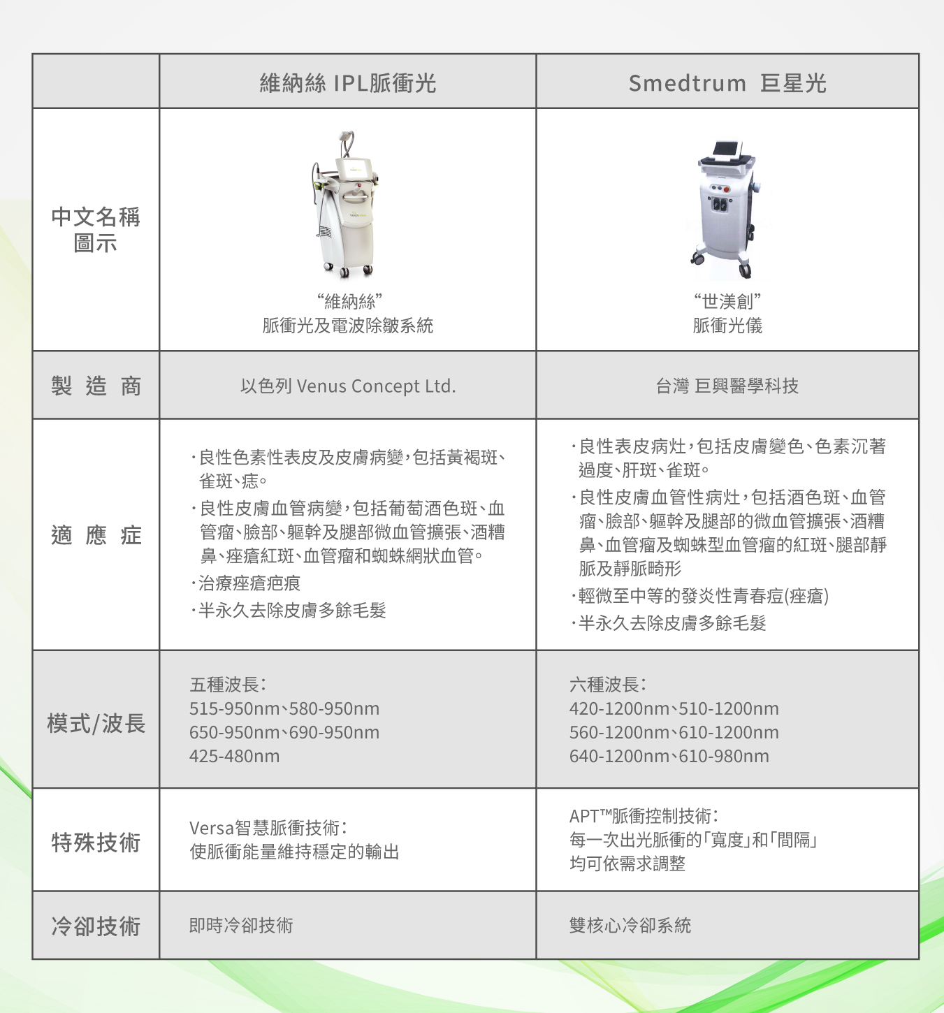► 我可以在星和醫美找到哪些脈衝光機台呢?