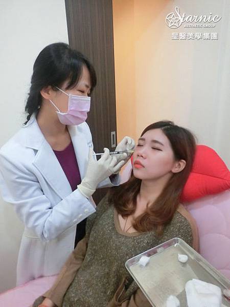 剛開始醫師先填補右邊的淚溝,因為第一次接觸微整,其實我很緊張~