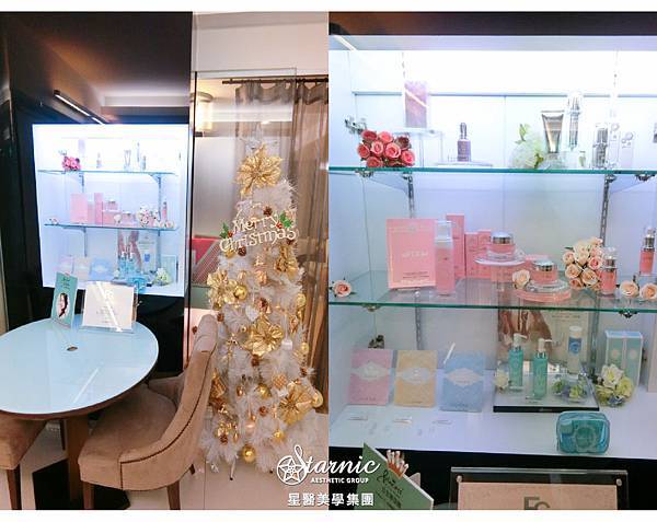 哇~一進門就看到應景的聖誕樹以及櫃上的保養品系列!