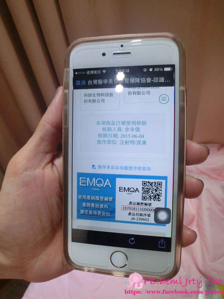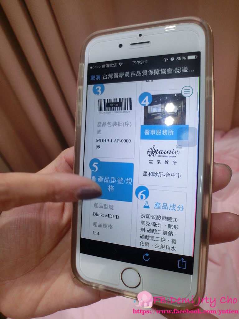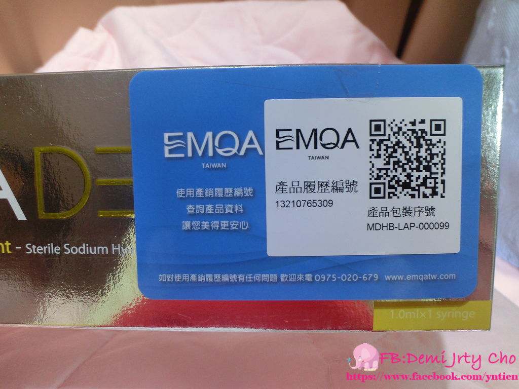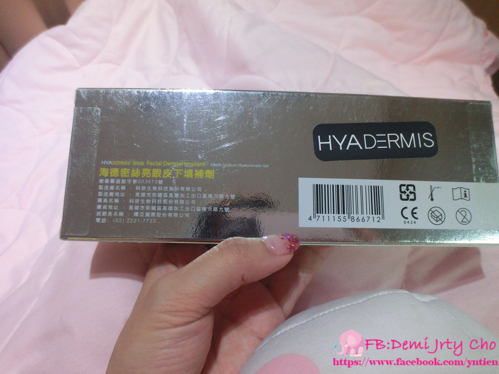 這就是我等等要施打的海德密絲亮眼皮下填補劑 ,來自台灣品牌,因為有掃瞄他的產品履歷,我覺得既然要花錢了而且是打在自己臉上耶!如果產品很差有可能會毀了一切