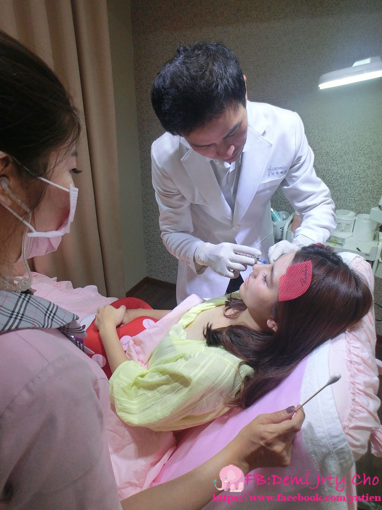 醫生準備好了!這次醫生幫我用鈍針施打玻尿酸!目的是因為我不想要臉上黑青所以用鈍針比較不會造成黑青,但是因為鈍針比較痛所以醫生有幫我先打兩針麻醉在臉頰