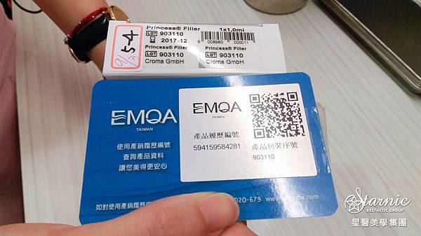 敷麻藥等待時,護理師給我一張藍色的卡片,並請我核對針劑上面的編號,在護理師解釋下,我才知道這就是醫美針劑的產品履歷,是由臺灣醫學美容品質保障協會提倡的,有了這張卡,就可以保證所施打的來源跟成分,都是正當安全的產品喔!是消費者的一大保障阿!